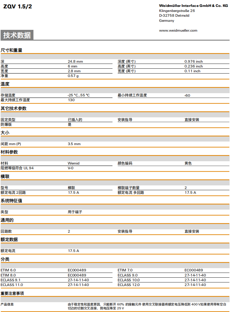 Weidmuller ZQV 1.5/2 魏德米勒 接線端子橫聯件 訂貨號1776120000 |