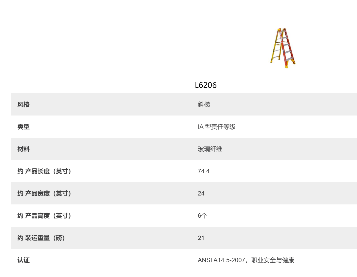 穩耐安全梯6英尺IA型玻璃纖維步梯6206