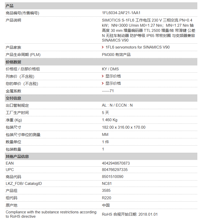 西門子V90 伺服電機 1FL6034-2AF21-1AA1