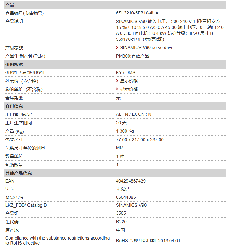 西門子V90 伺服驅(qū)動器 6SL3210-5FB10-4UA1