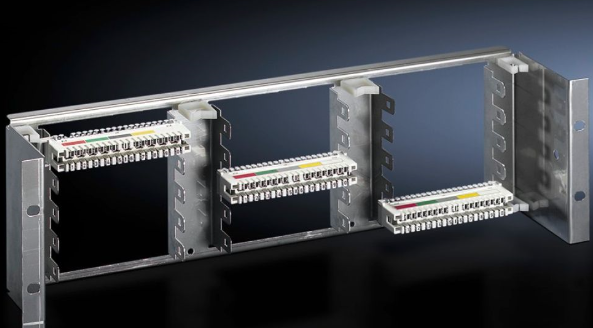 用于安裝***多 15 個(gè) LSA-Plus 板(每個(gè) 10 DA)。可水平安裝 3 排每排 5 個(gè) LSA-Plus 接線板 2/10,結(jié)構(gòu)系列 2。板長 124 mm,高度安裝孔陣分布間隔 22.5 mm。此支承單元可集成安裝在所有 482.6 mm (19) 固定平面上。安裝的前面在 19 壓蓋板后面 75 mm 處。集成式束線環(huán)能夠?qū)νㄓ嶋娎|進(jìn)行分級鋪設(shè)和分配。