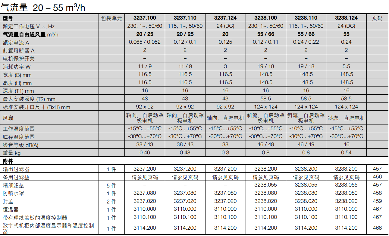 說明:-過濾器風扇3237.XXX是被兩根獨立的電線連接,其他過濾器風扇則采用無螺紋彈簧端