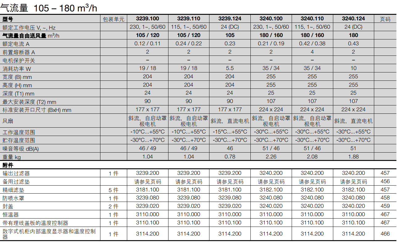 說明:-過濾器風扇3237.XXX是被兩根獨立的電線連接,其他過濾器風扇則采用無螺紋彈簧端