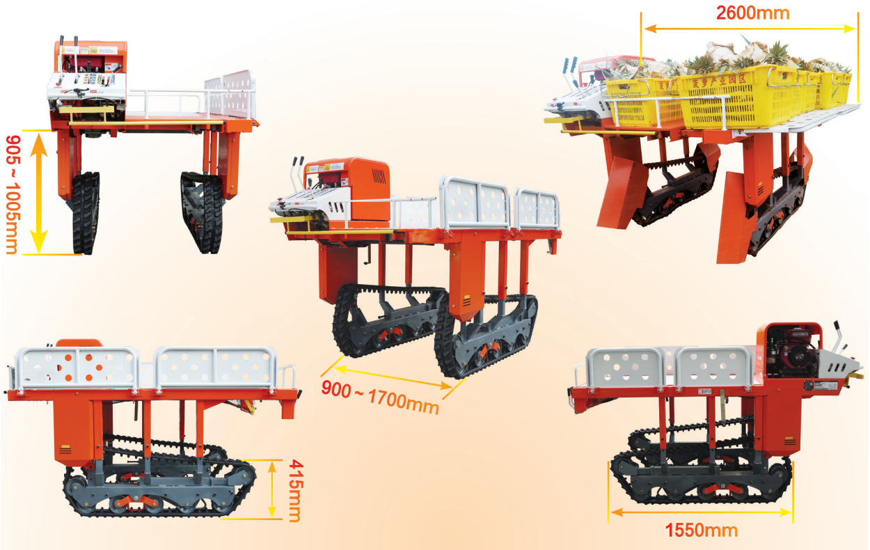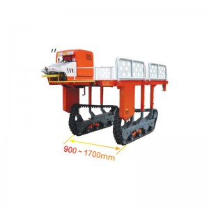 履帶自走式高床運輸機是一種新型**田間運輸裝備,適用于高稈作物田間管理作業及農用物資、農機具、農產品田間運輸,該機采用履帶底盤行走機構,在南方丘陵、坡地有較好的越障能力,可以根據壟高、壟寬、植株間矩和作物高度,調整機器的寬度、高度來完成田間運輸作業。