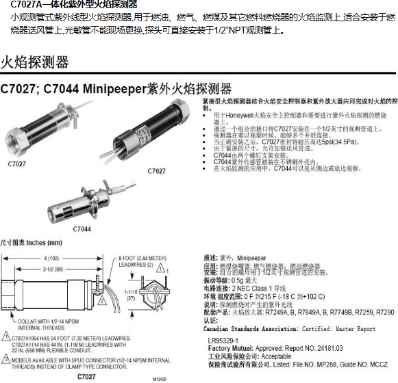 Honeywell火焰探測器探頭 C7044A1006 霍尼韋爾