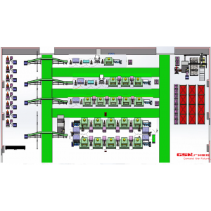 - 采用11臺RB15L機(jī)器人,配套相應(yīng)的手抓、沖壓設(shè)備、噴油機(jī)、輸送線,組成三條產(chǎn)線;