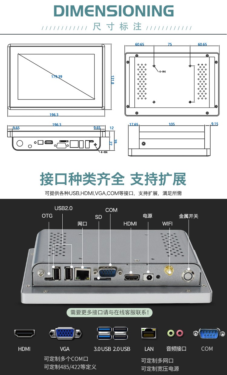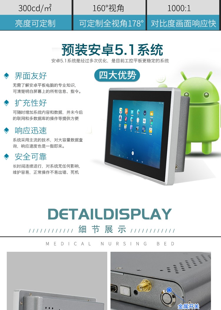 7寸安卓迷你工業平板電腦電容觸摸工控一體機醫療機器人門禁終端