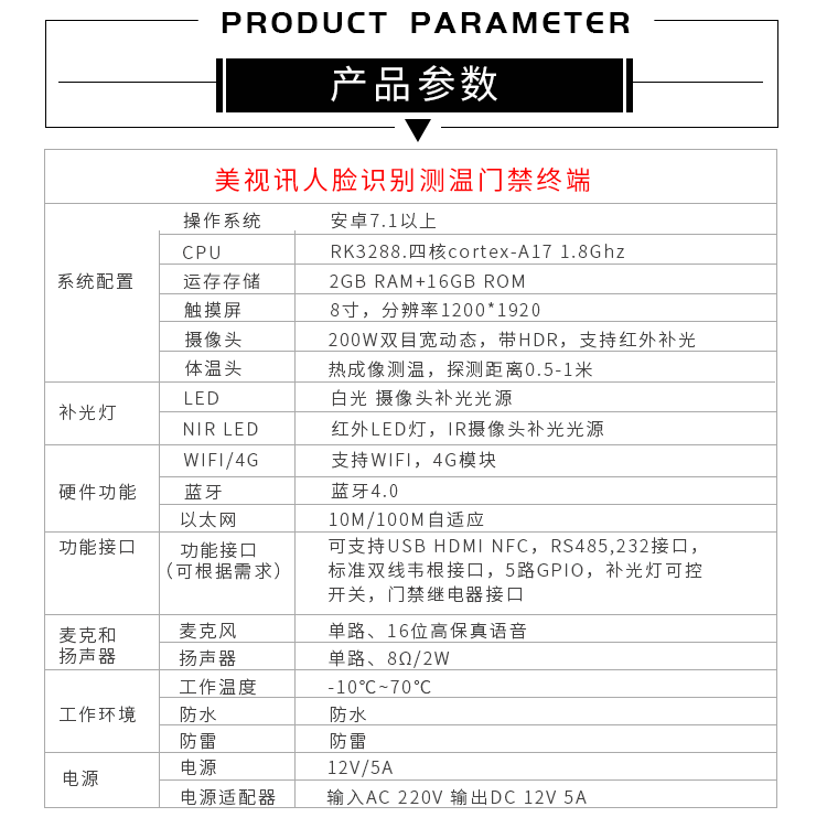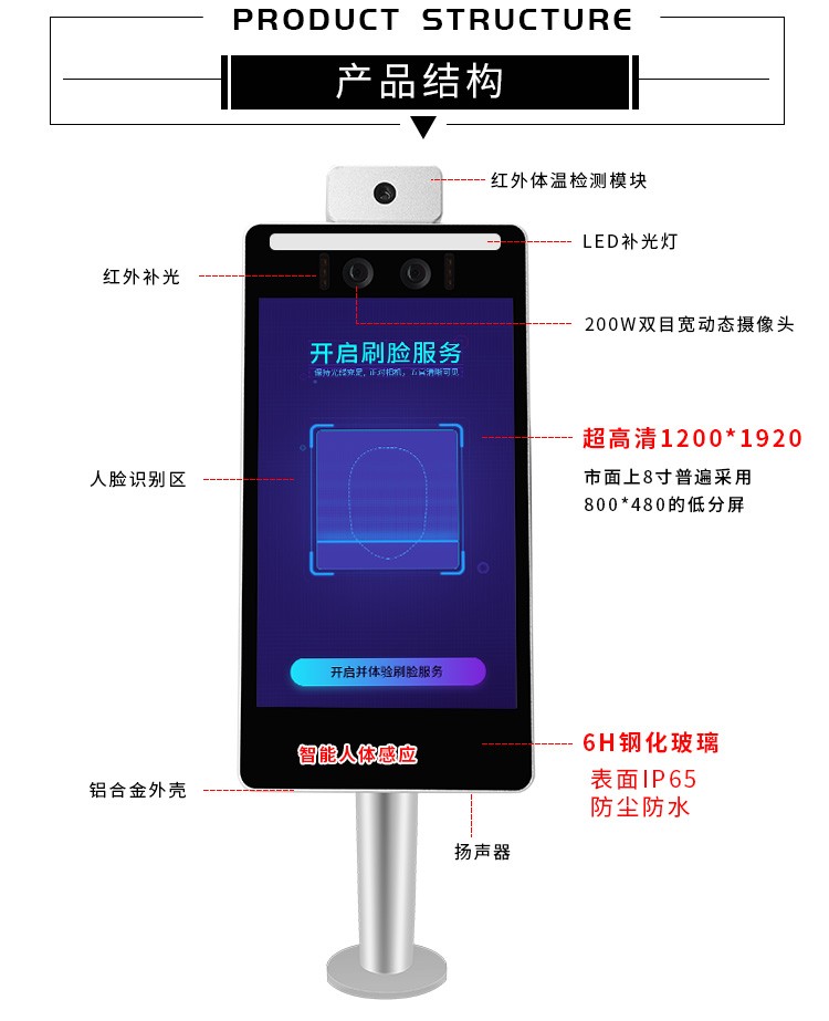 8寸安卓雙目攝像頭人臉識別紅外測溫一體機(jī)門禁智能終端安檢閘機(jī)