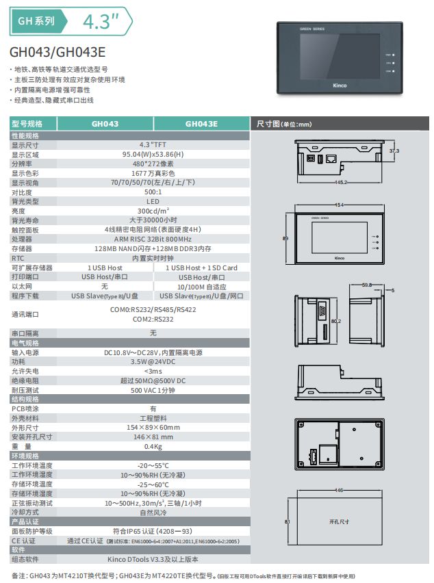 kinco步科4.3寸觸摸屏GH043/GH043E1