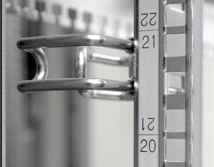 帶英制孔距分布的數字標記來明確標記出單個高度單位,高達 56 U。