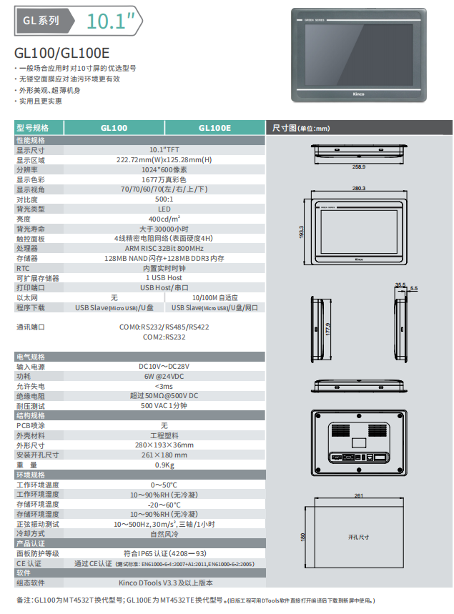 kinco步科10.1寸觸摸屏GL100/GL100E