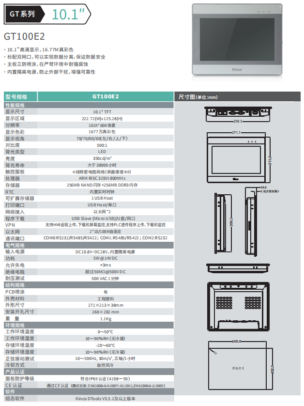 kinco步科10.1寸觸摸屏GT100E2/GT100E2-WiFi/4G/CAN
