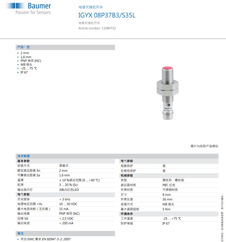 Baumer/堡盟傳感器IGYX 08P37B3/S35L電感式接近開(kāi)關(guān) |