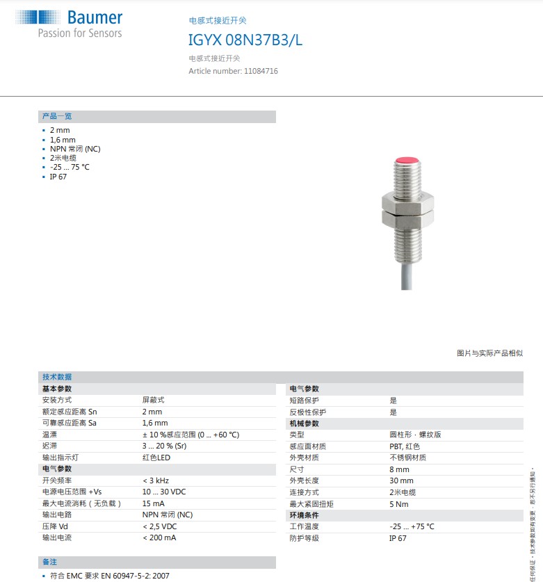 Baumer/堡盟傳感器IGYX 08N37B3/L電感式接近開關(guān) |