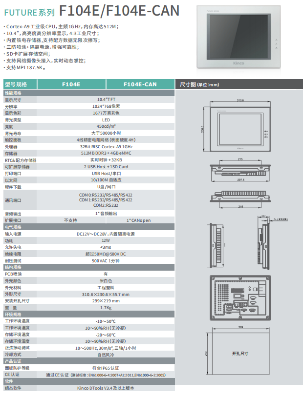 kinco步科10.4寸觸摸屏F104E/F104E-CAN
