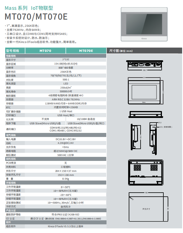 kinco步科7寸觸摸屏MT070/MT070E