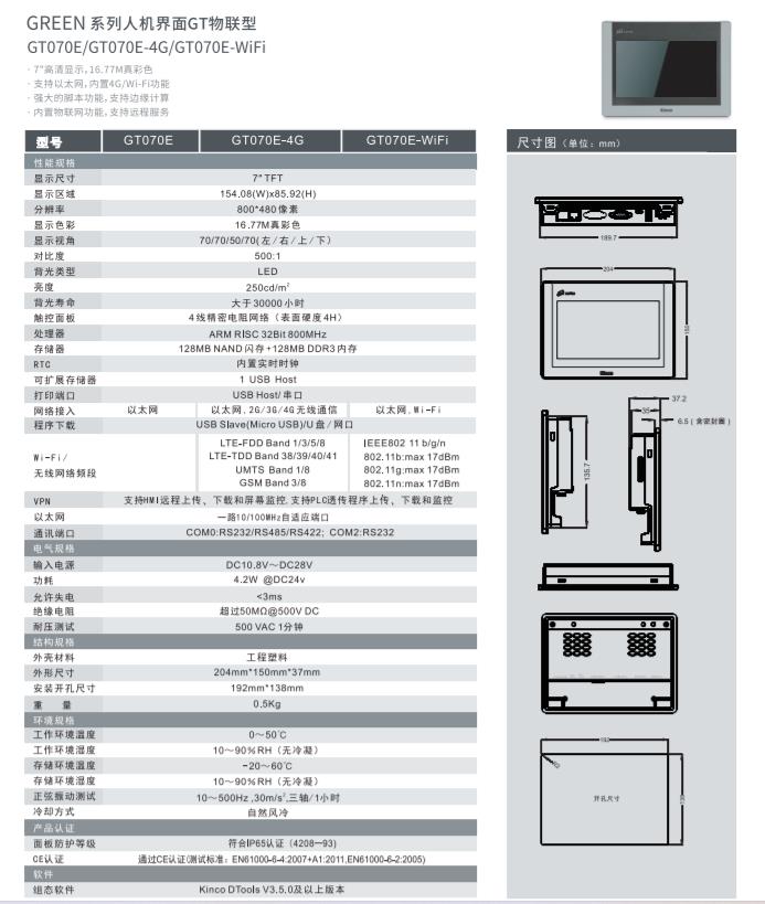 kinco步科7寸觸摸屏GT070E/GT070E-4G/GT070E-WiFi