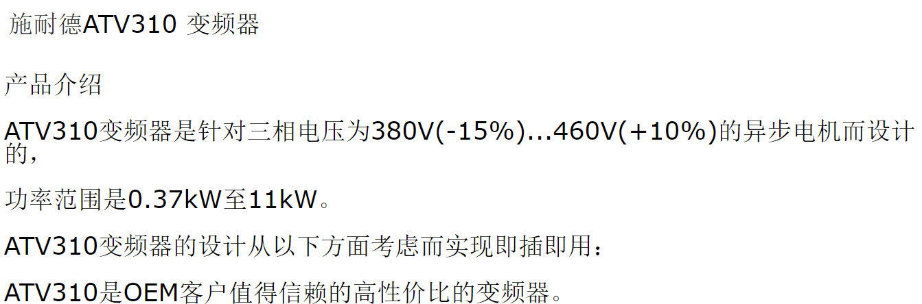 施耐德ATV310變頻器 ATV310HU30N4A 3KW