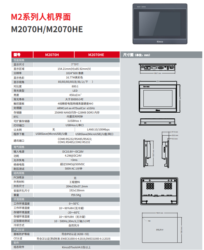 kinco步科7寸觸摸屏M2070H /M2070HE
