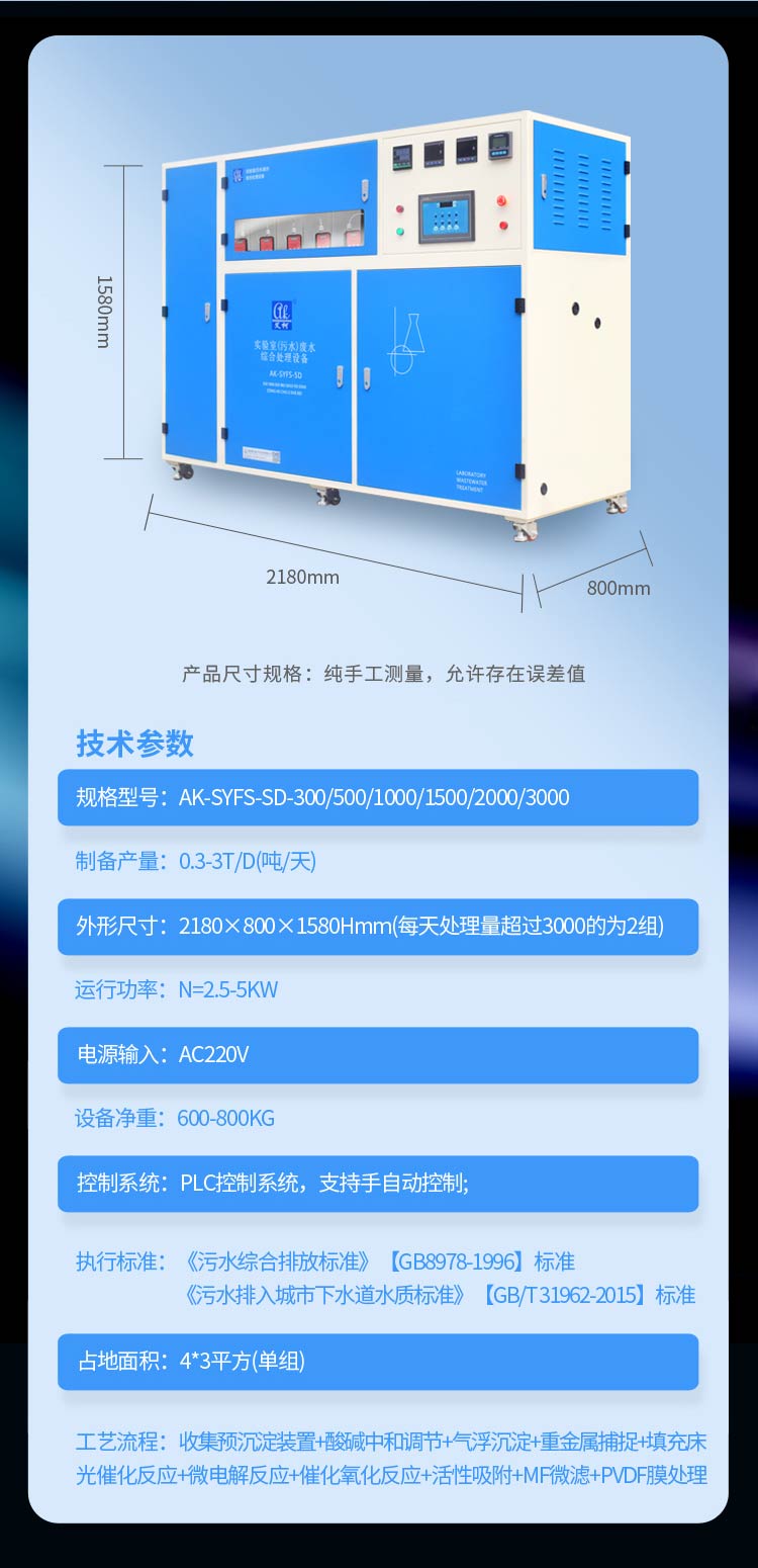 艾柯實驗室廢水污水綜合處理設備技術參數