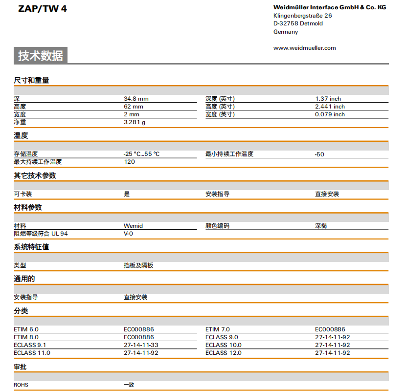 Weidmuller ZAP/TW 4 魏德米勒 直通型接線端子 訂貨號1632090000 |