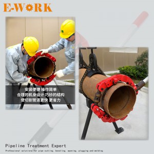 本系列切管機(jī)被廣泛應(yīng)用于易燃易爆的環(huán)境,禁止噪音區(qū),空間狹小的溝槽,水中等環(huán)境中。在切割管道時(shí)不產(chǎn)生任何火花及碎屑,既保證了管道施工的安全,又保證了管道內(nèi)部的清潔,以避免堵塞閥門,是當(dāng)前理想的大管徑管道冷切割工具。