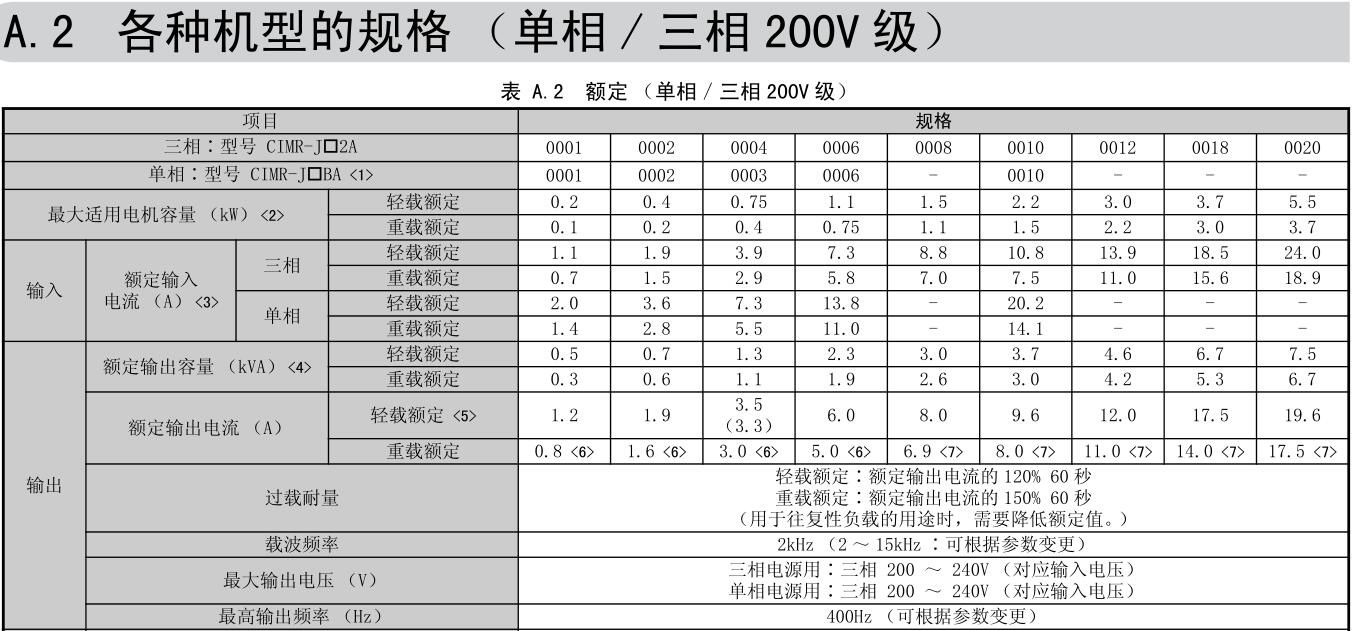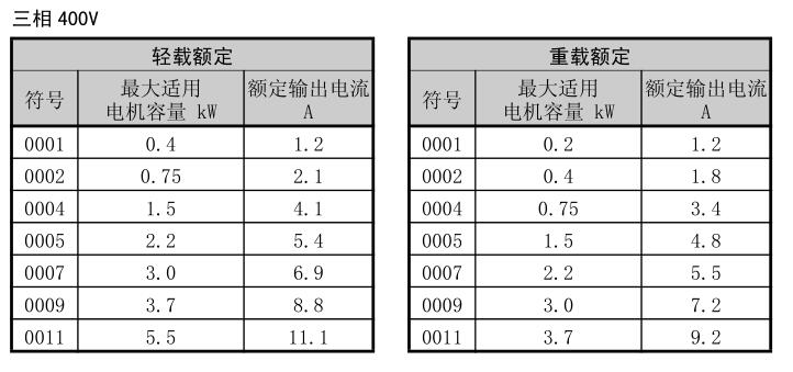 容量范圍 200V級(三相電源用)0.15.5kW