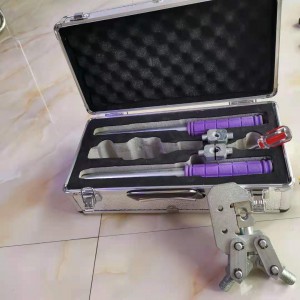 其主要特點是:省力(雙杠桿力)、小巧靈活、裝配在手提式鋁合金箱內便于模具機壓接鉗的保存,使用方便。