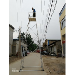 梯身及底架均可快速分解,便于搬遷。 帶有防制動器,既防傾倒,又便于在斜道上作業。 工作臺可以調節高度,便于運輸梯車高度用戶可根據情況自行確定。