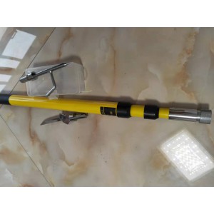 接觸網(wǎng)挑異物桿、雜物桿是用來清除掛在供電線路上的異物(如樹枝 塑料袋 風(fēng)箏等)的專用工具,其功能可以挑、鉤、鋸、打。該工具用環(huán)氧樹脂玻璃纖維管材料為桿身,絕緣性能好。重量輕,可以伸縮,攜帶方便,桿頭部刀據(jù)和鉤尖用不銹鋼或絕緣材料制作,不但防銹,而且鋒利。更換方便。伸縮機(jī)構(gòu)是定位銷鎖緊,伸長時拉出,當(dāng)拉到看見刻線時停住,而后左右轉(zhuǎn)動,轉(zhuǎn)到一定角度,定位銷會自動彈出,從而定位鎖緊,當(dāng)收縮時用手指按下定位銷同時往里推內(nèi)管即可縮短