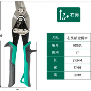 航空剪***早用于航空行業而得名,因其使用范圍廣及其非常高的切割能力,可以用于各類薄鐵皮和不銹鋼板的切割。航空剪相對于普通的鐵皮剪來說:①因其有“雙杠桿”結構,剪切力更大;②帶齒紋設計的刃口,剪切時有效避免打滑;③根據不同的型號,剪切直線、向左弧線、向右弧線可自由變換。