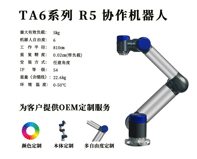 深圳泰科智能TA6-R5機械手臂 6軸桌面式協作機器人