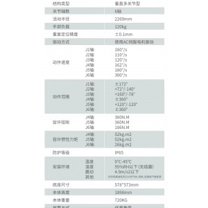 6軸工業機器人GBS120-C2269 負載120kg 可用于噴涂組裝分裝等應用 |
