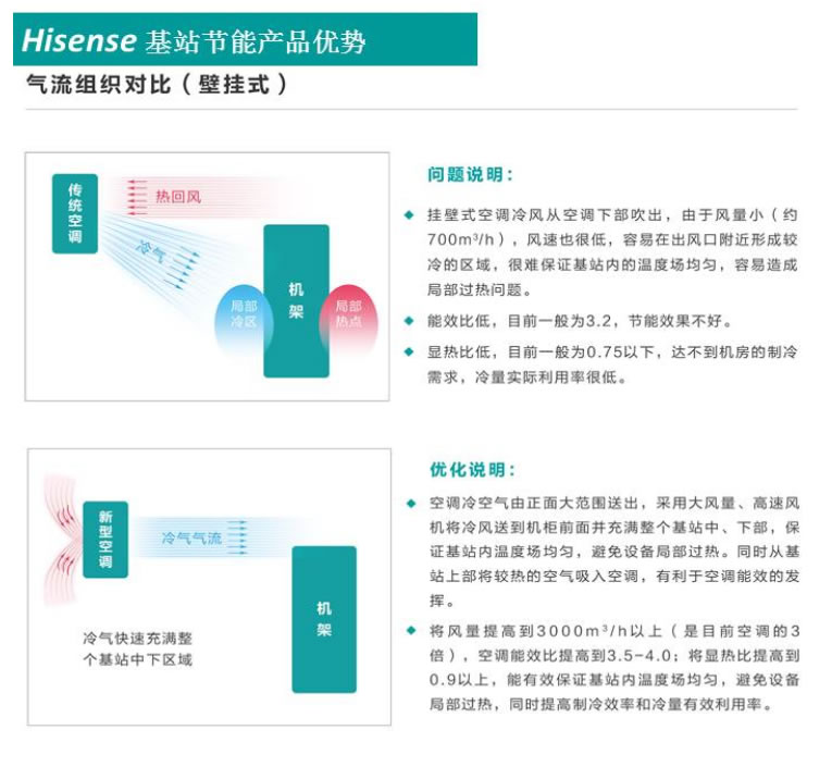 2、超風量、杜絕凝霜:基站空調出風量遠遠于同才能的普通空調,實踐運轉中有小焓差和高顯熱的特色,確保基站設備的發熱量能及時帶走,杜絕了空調涼風發生的凝霜問題;