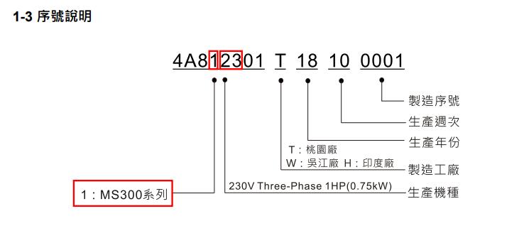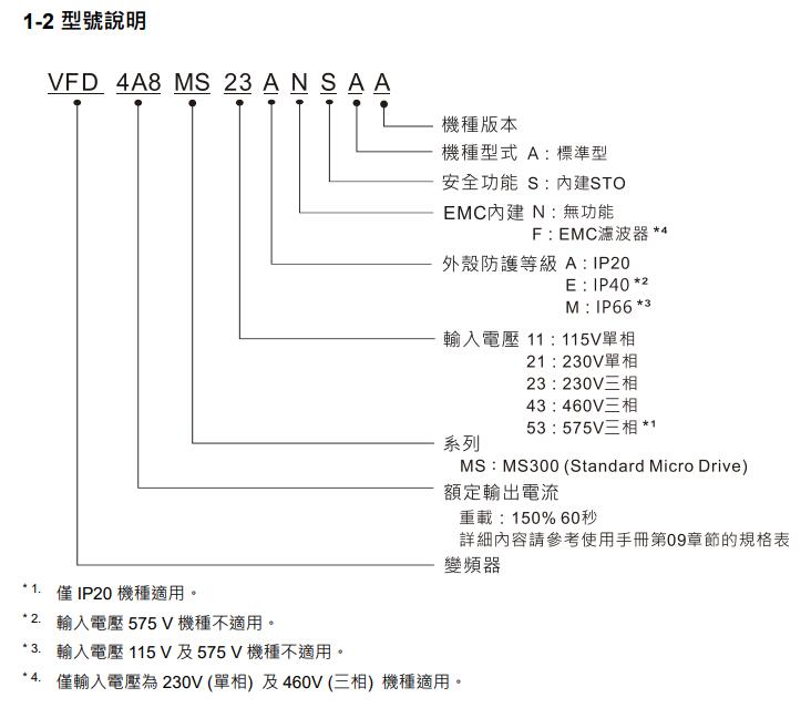 臺達變頻器MS300系列所有型號: