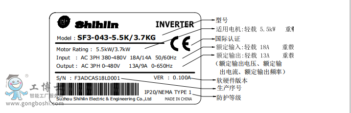 SF3系列銘牌說明;