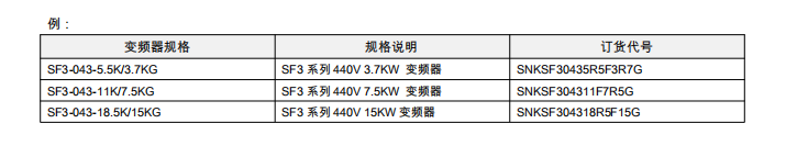 士林變頻器SF3系列型號說明;