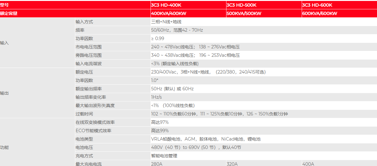 山特城堡3C3 HD是山特城堡3C3經典產品系列的創新升級產品,山特城堡系列UPS秉承為用戶關鍵負載提供安全、可靠、穩定、環保的電力保障為宗旨,不斷對產品進行優化和更新。新一代3C3HD 400-600K 采用目前*****的電力電子及數字信號控制保護技術,則