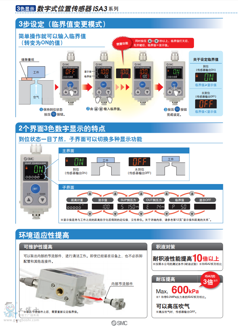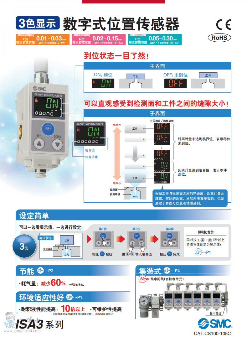 SMC 3色顯示式數字式位置確認開關 ISA3