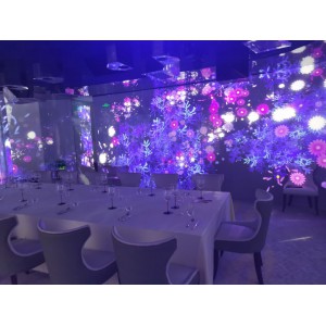 如:原始森林、海底世界、浪漫花海、實現(xiàn)各個場景的瞬間切換置身其中,改變了傳統(tǒng)宴會廳道具固定的形式,為宴會廳實現(xiàn)了各種場景變換的可能。運用全息影像技術(shù)做出逼真的舞臺立體投影效果,并達(dá)到身臨其境的感覺,讓現(xiàn)場來賓無不沉醉其中。客戶可以近距離感受聲、光、電融合的視覺盛宴,如同置身于一場華麗的電影之中。
