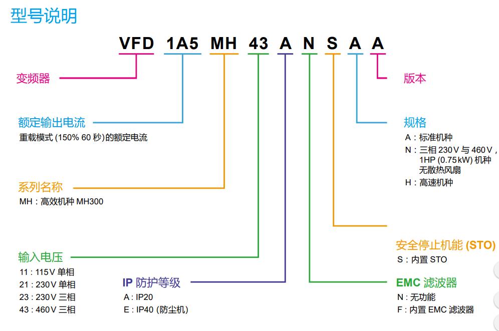 臺達MH300 變頻器 VFD3A0MH43ANSAA 460V 0.75KW