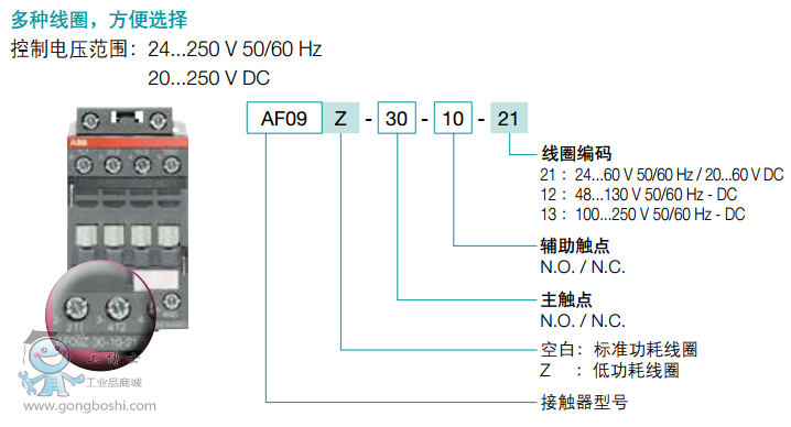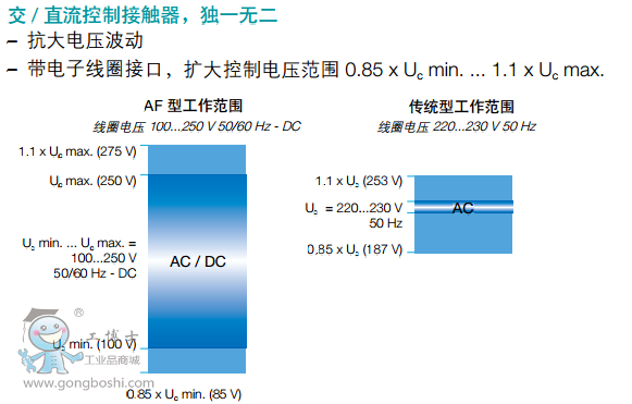 - 全球范圍的技術支持和全世界通用的產品:100 - 250 V AC/DC線圈涵蓋所有標準網絡電壓