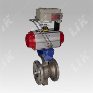 氣動法蘭V型球閥是一款硬密封、四氟密封調節球閥。它采用板簧加載的可動閥座結構,閥座與球體不會產生卡阻或脫離等問題,密封可靠,使用壽命長。V型球閥閥芯設計成帶有特殊開關的V型缺口,流通能力大,壓力損失小,并具有準確的截流特性和控制功能,流量特性為近似百分比。