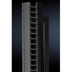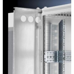 用于隱蔽鋪設(shè)電纜的電纜槽。可隨時便捷地通過鉸鏈連接的電纜槽蓋鋪設(shè)電纜,槽蓋可拆卸。可以從電纜槽內(nèi)部或背板將電纜穿引至箱體。隨附于理線槽的電纜固定桿可插入手指形理線架,從而輔助電纜導(dǎo)入。該電纜槽也可選擇采用螺栓進行連接。為優(yōu)化空氣導(dǎo)流,可與用于 TS IT 的毛刷套件組合使用。