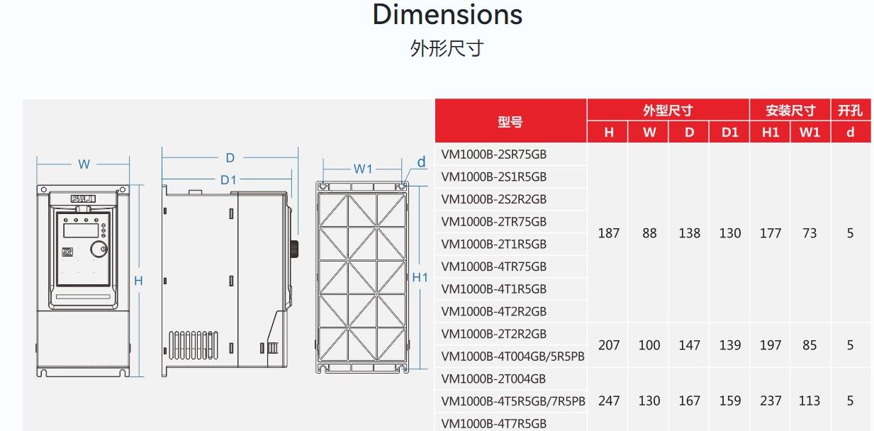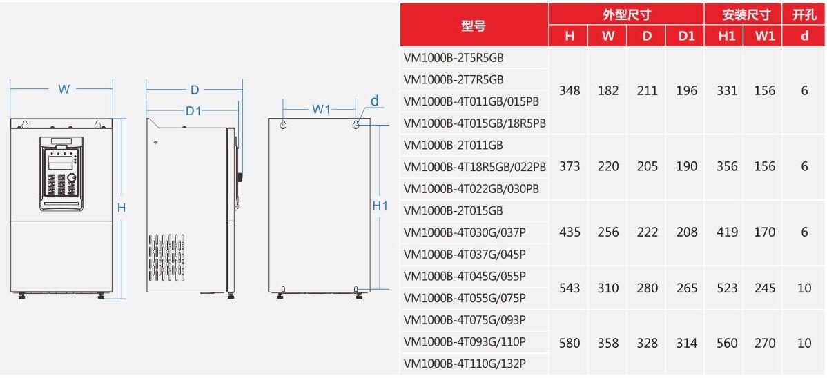 VM1000B系列高性能矢量型變頻器,采用國際主流的32位DSP作為主控芯片,其運算速度快,控制精度高,具備強大的控制性能;使用**品牌的功率器件及原材料,以**的制造工藝加工而成,滿足廣大客戶的高品質需求。