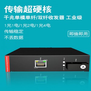 HY5700-4514G-FC20A 4口千兆光纖收發器工業導軌式發送機;光口:1個千兆光口,距離20公里,FC口,單模單纖;電口:1個千兆網口;安裝方式:工業導軌式