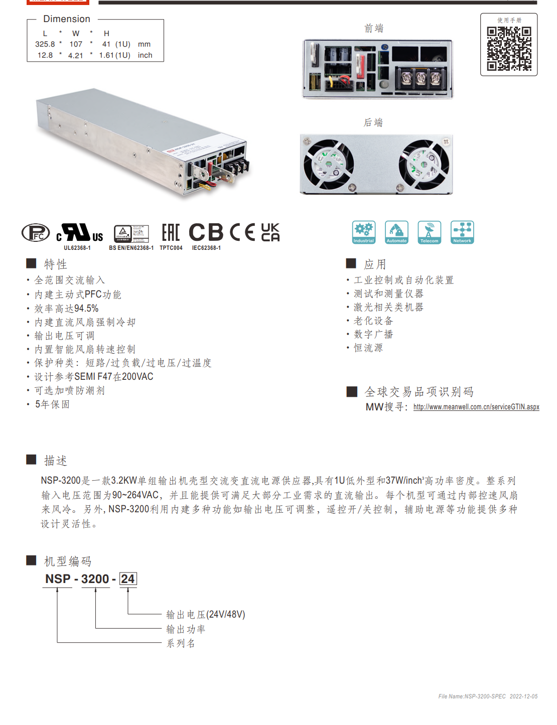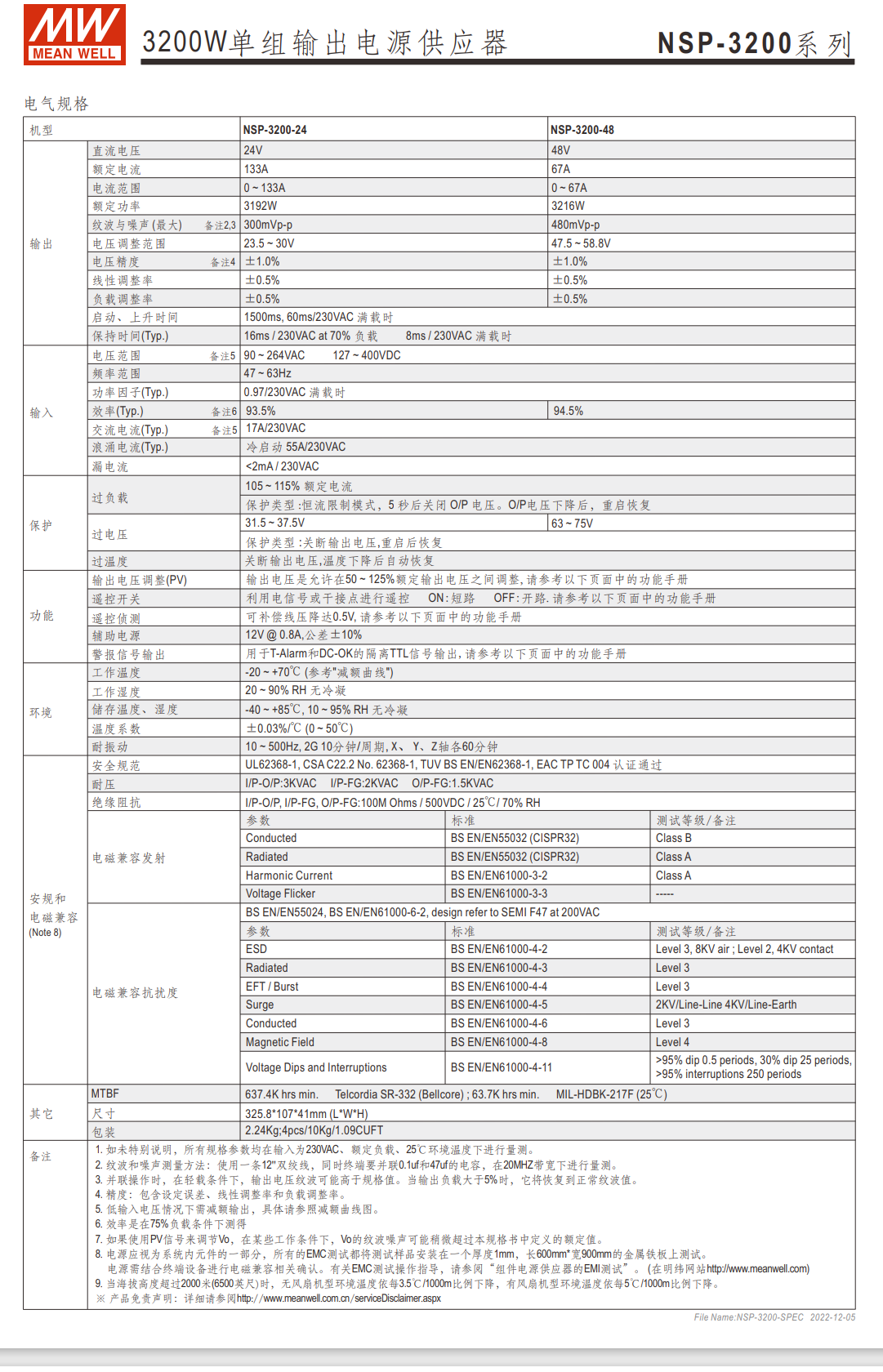 3200W單組輸出電源供應器 NSP-3 2 0 0系列 臺灣明緯專營