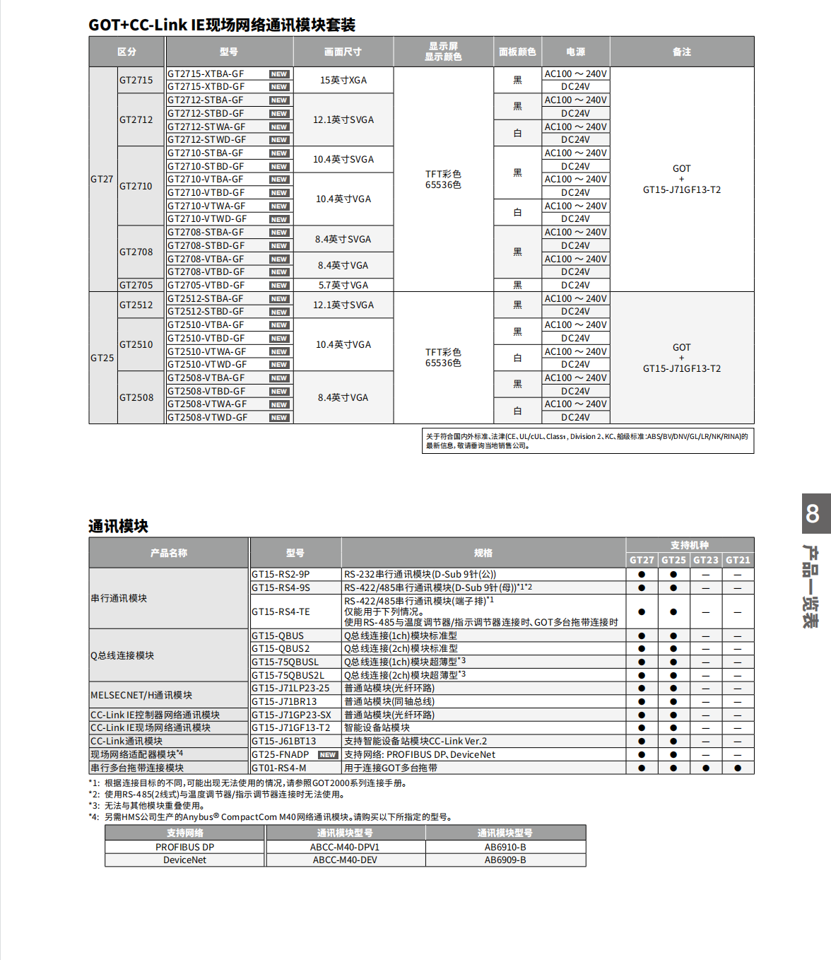 三菱GOT2000系列觸摸屏及附件型號表;
