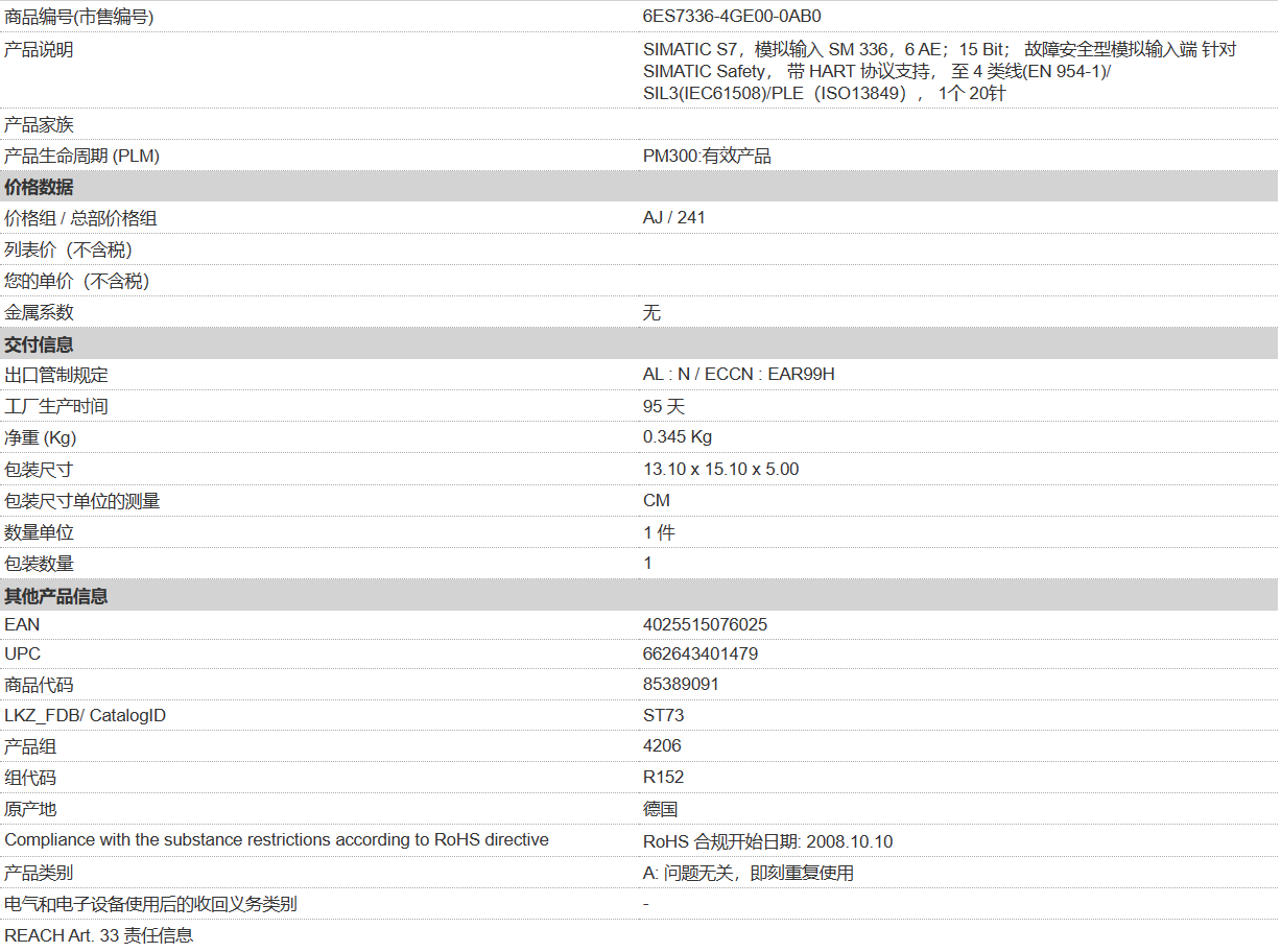 西門子6ES7336-4GE00-0AB0
