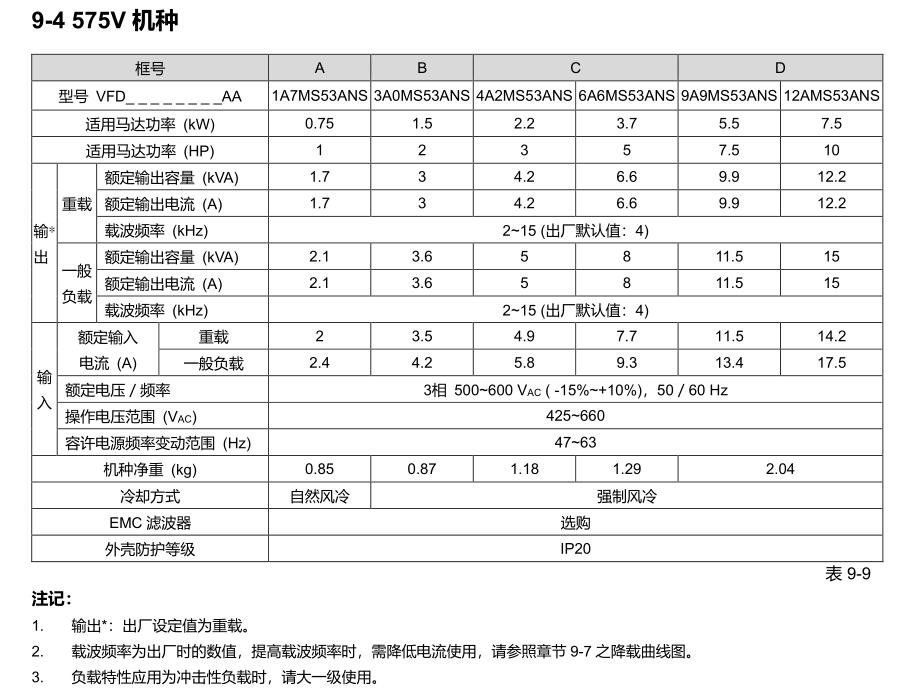 輸出頻率范圍 0 ~ 599Hz (標準機種)